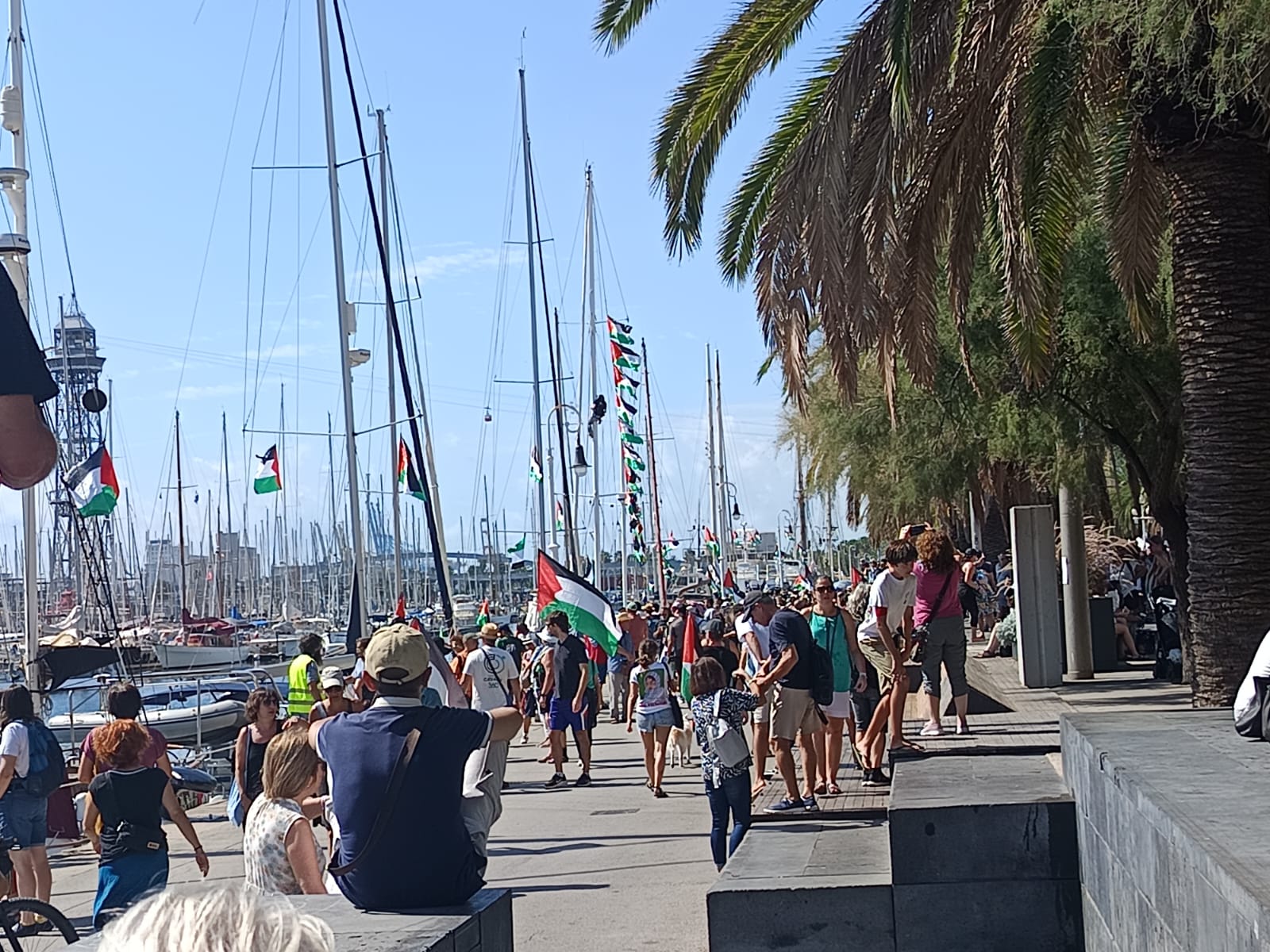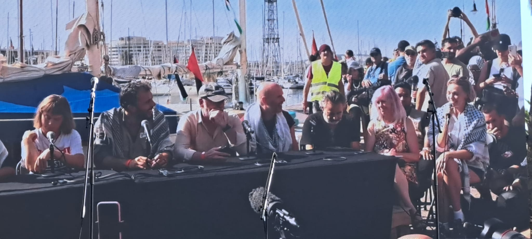 Imágenes de la despedida de la flotilla rumbo a Gaza, desde el puerto de Barcelona.